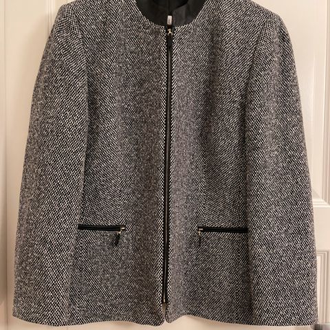 Ny blå lang vindjakke og lite brukt beige ulljakke selges.