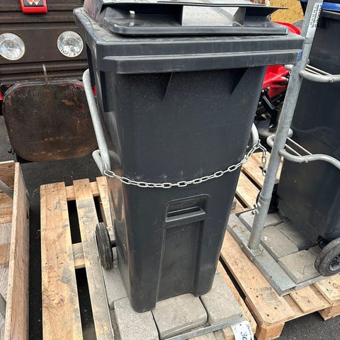 Søppel stativ plass til 4 dunker +plastsekker. . Laget av impregnerte materialer svært solid . Mål : L 3,14 m , D 90 cm H 124 cm . Ferdig laget og malt .Sikre deg dette solide og flotte stativet før høststormene kommer ,slik at dunkene står stødig og sikkert . Kan være behjelpelig med transport i nærheten for kr . 300. Nå på Tilbud !!