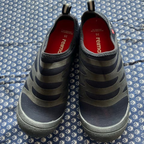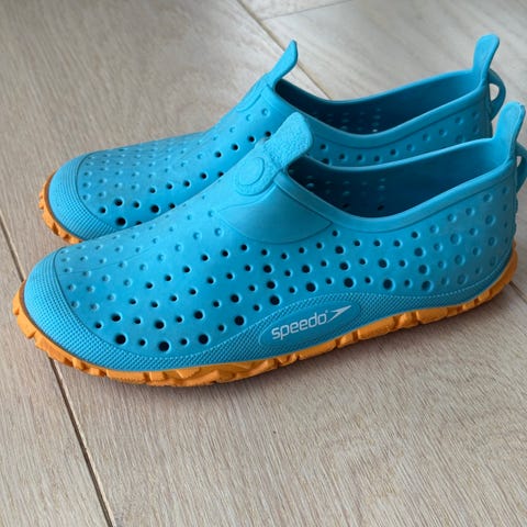 Nesten ubrukte badesko fra Aqua Sphere str 35. Sort og grå.