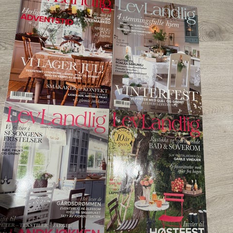 En samling av diverse magasiner Lev landlig, Rom123, Bonytt, Kamille. Magasinene dekker temaer som hage, livsstil, helse og sesongrelaterte emner. Passer for lesere interessert i inspirasjon til hage, uteplass, helse og generell livsstil.