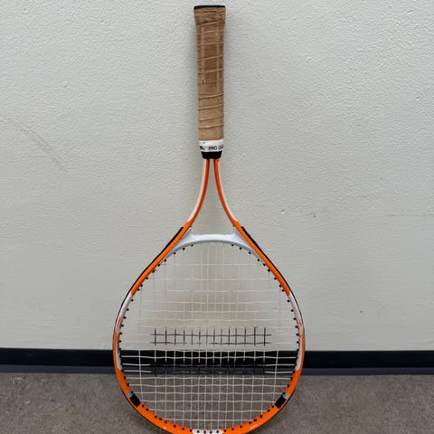 Racketen er svært lite brukt og med unntak av litt håndmerker på grip’et er den nesten ikke synlige bruksmerker: lakk i god stand, ingen slitasje av merket på strengene, ubetydelig merker på beskyttelses plast øverst. Med ny grip tape er den nesten som ny. Anbefaler alltid å bytte griptape på bruktkjøp uansett.