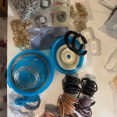En hel pakke + rester av en pakke. Er i tre. Vi laget nøkkelringer til familiemedlemmer i gaver. Malte på hver enkel + pyntet de ekstra