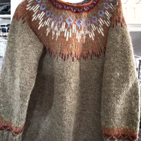 Nystrikket genser med kattepuser på selges. Dette er strikket i alafosslopi og er vannavvisende til en viss grad. Garnet i seg selv kostet over 800. Genseren er en stor str L passer om en bruker ca 44 i str ellers. Pris kr 1600. Evt frakt tilkommer.