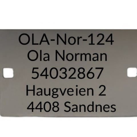 For teiner sett i lenke, skal kvar enkelt teine merkast med eigars namn og adresse.