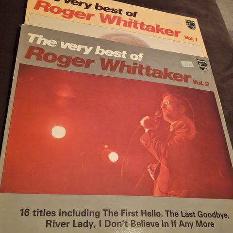 Roger Whittaker The Very Best Of vinylplate med 16 titler inkludert The Last Farewell, New World In The Morning, Durham Town og Mexican Whistler. Platecover med bilder av artisten. Sendes mot porto kr.69.