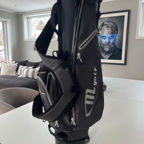 Selger min Wilson trallebag, som er i veldig god stand. Denne golfbaggen er veldig lett og har ingen slitasje, men noen fuktflekker. (Se bilde). Golfbaggen har flere lommer med glidelås for oppbevaring av golfutstyr og personlige eiendeler. Designet for enkel transport med bærehåndtak og skulderstropp. Laget av slitesterkt materiale egnet for utendørs bruk.
