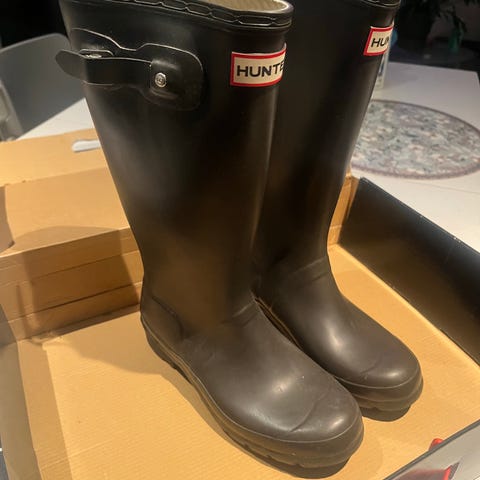 Pent brukte, navy blå støvler fra Hunter. Selges med original eske. Kjøpt hos Agnar Hagen. Ny pris 999 kr.