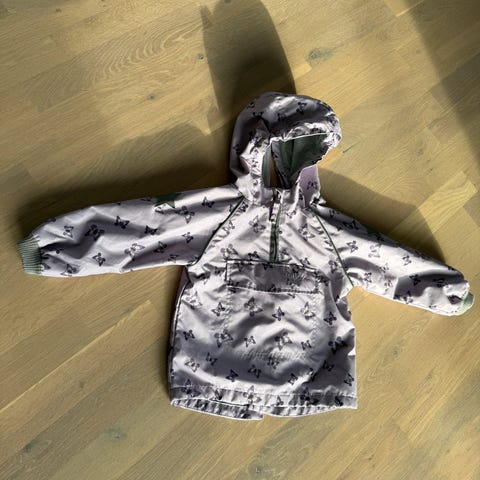 Pent brukt av et barn. Refleksdetaljer på armene og halsen. Lukking med glidelås bak.
