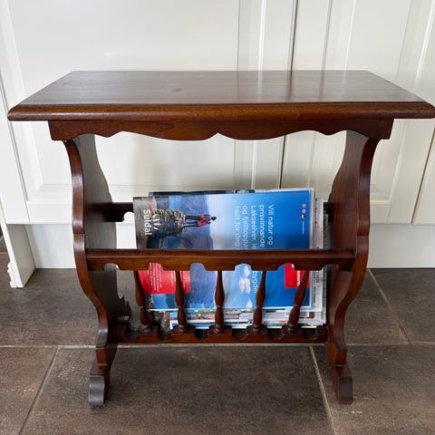 Flott bladkurv med bordplate på toppen så man kan sette fra seg kaffekoppen når man leser.