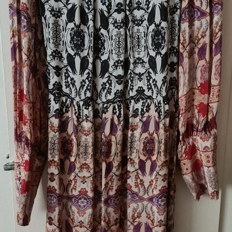 Shein blomster kjole i størrelse XXL med flerfarget mønster. Kjolen har lang erm og er laget av lett materiale.