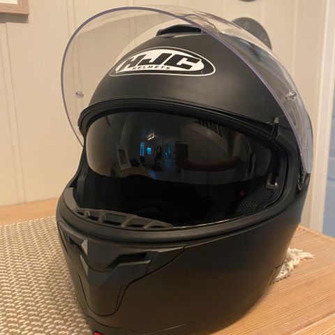 Veldig lite brukt barnehjelm fra HJC, størrelse Large og 54 cm. Guttungen var med på et par turer på sykkelen, ingen synlige merker eller slitasje. Dobbel D lås.