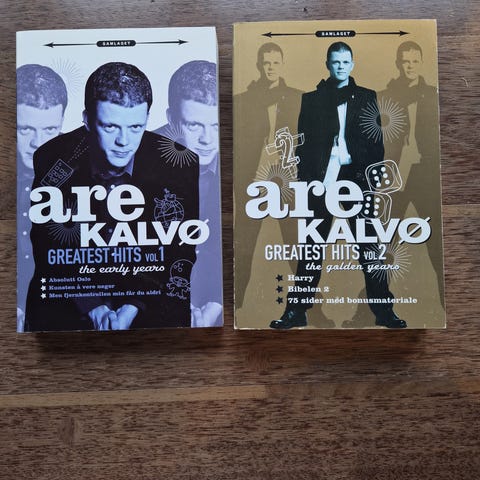 Are Kalvø Greatest Hits Vol. 1 og 2, er en samling av tekster og humoristiske innlegg fra de tidlige årene, utgitt av Det Norske Samlaget.