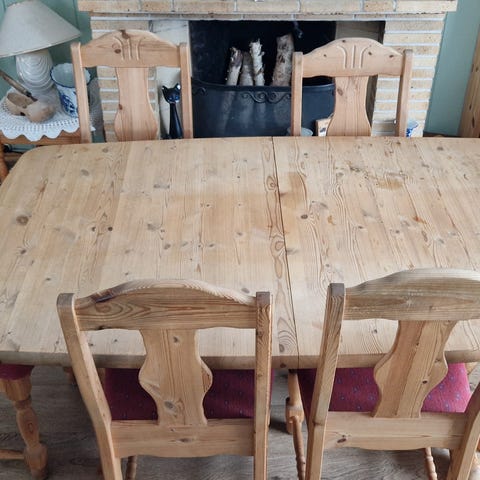 Solid furu spisebord og 4 stoler fra dødsbo selges