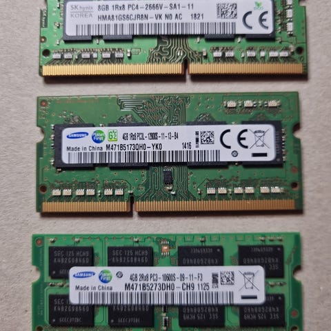 - 3 stykker Samsung 2GB DDR3 1333MHz SO-DIMM 1,5V