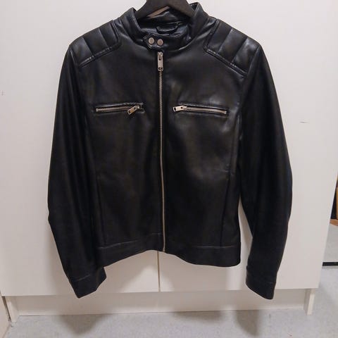 Stilig kunstskinn jakke i god stand. Kan sende den i posten.