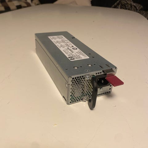 HP Server Power Supply med en effekt på 1200W. Designet for bruk i servermiljøer med høy pålitelighet. Inkluderer strømforsyningskabel og tilkoblingsadaptere for enkel installasjon og tilkobling til serverkomponenter.