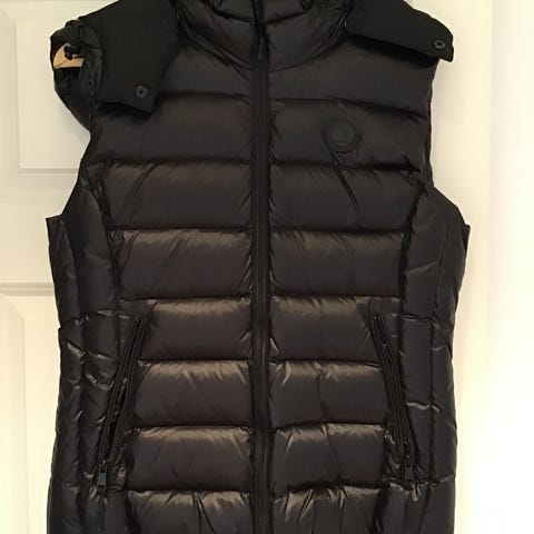 Urban Pioneers vest i størrelse xs for kvinner. Vesten er svart og har en polstret, vattert design med glidelås foran. Den har en avtagbar hette og er laget for utendørs bruk. Innvendig fôr har et mykt, pelslignende materiale for ekstra komfort og varme.