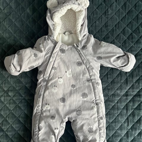 H&M vinterdress for barn i størrelse 56. Dressen er beige med rutemønster og har tilhørende votter og sko med pelsdetaljer. Den har mykt foret innside for varme og komfort.