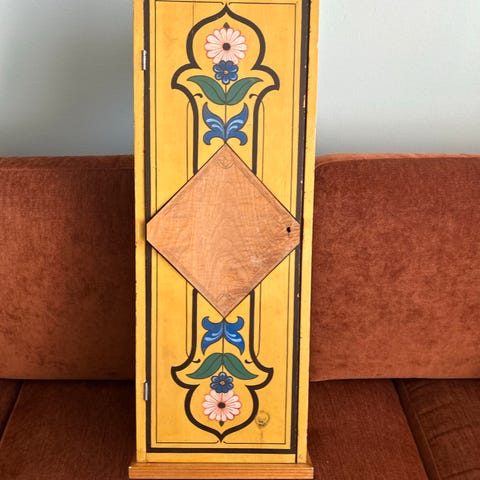 Liten rosamalt kassa som brukt til å bevare stern lys tror jeg. fra 1800 tallet 28,5×21×14cm.