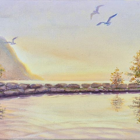 Maleriet illustrerer at man aldri vet hva som kommer. Fargene domineres av mørke blå og grønne toner.