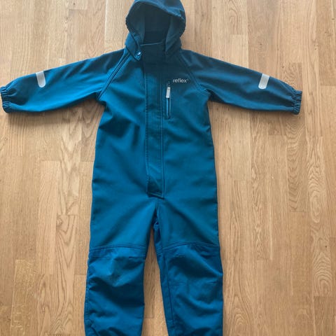 Str. 110: Blå Reflex dress - god stand, mangler strikker på bena og refleksen nederst på det ene benet har såvidt løsnet i hjørnet. Ellers pent brukt.