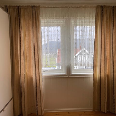 Tykke, pene gardiner selges rimelig. 6 stk 155cm, 12 stk 200cm