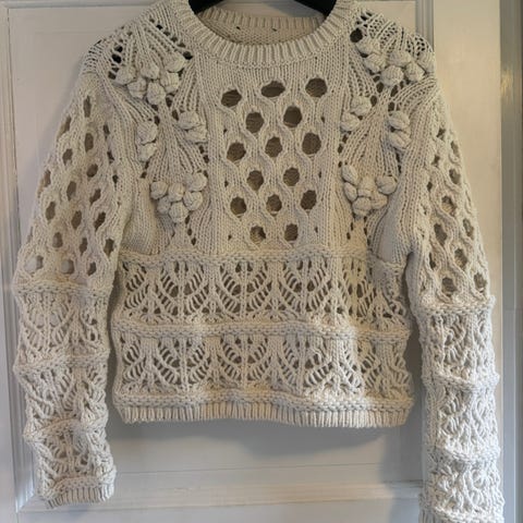 Kjempestilig genser, som bare ikke blir brukt 😅 Merkelappene er klippet bort, men mener den er str. M (og oppleves og sånn!) 🍀 Vær obs på at den er ganske gjennomsiktig. Jeg har pleid å bruke en enkel singlet under 😊