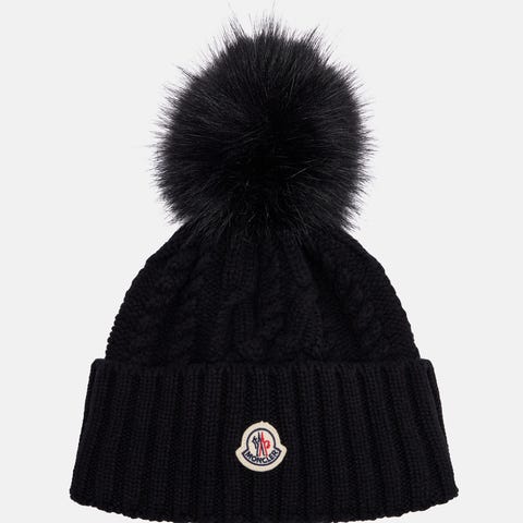 Moncler lue med dusk, Wool Beanie with Pom Pom🩶❄️ ull lue, dame størrelse