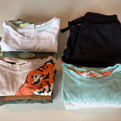 Pakken inneholder 5 stk. T-skjorter, 4 stk. sommerbukser og 1 lang shorts.