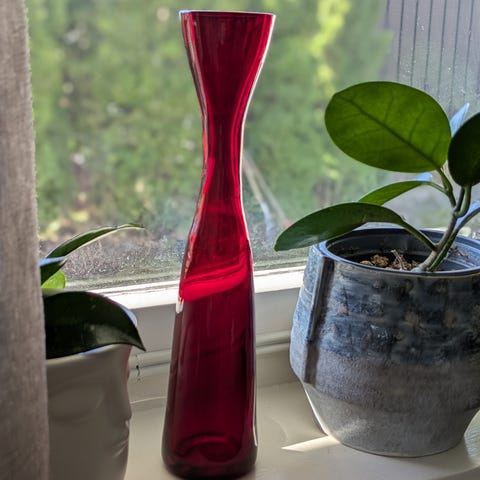 Vase høyde 21 cm, ø 6.5 cm 400,-