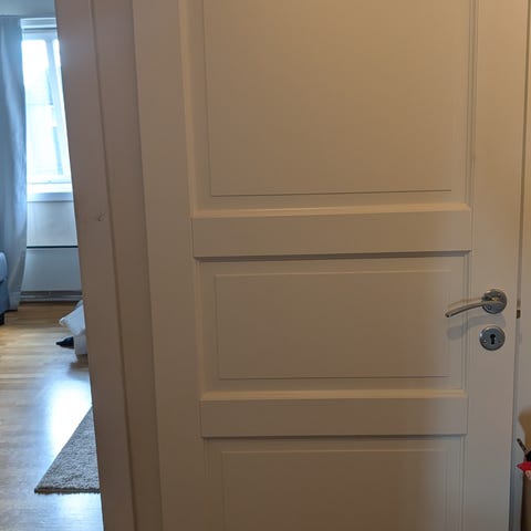 Swedoor speildør selges. Tror dette er Sweedoor Advance-Line Compact 03. Vekt 36kg, så dette er ingen lett pappdør. Maxbo selger disse for kr 2590.