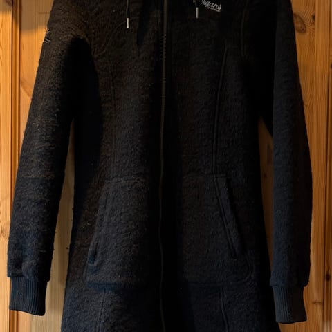 Ny kåpe I ullmix 55% ull fra Kingsland, mørk grå med røde detaljar, aldri brukt