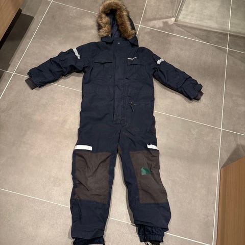 Størrelse 120. Noe slitt i fargen og rundt reflexene ingen hull eller større skader. Fargen har falmet litt vises på bildene.