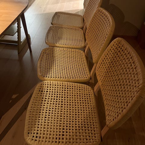 Den ene stolen har et par minimale merker i setet, men ellers i veldig god stand