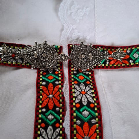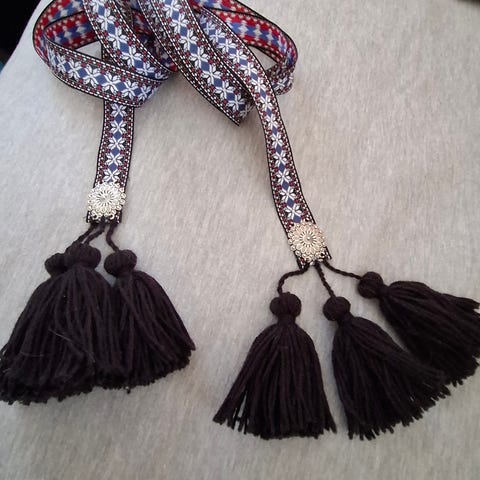 Tykke ullfletter til festdrakt eller bunad. Pr stk 250. Brukt mye garn og tid på arbeidet. Prisen er fastsatt.