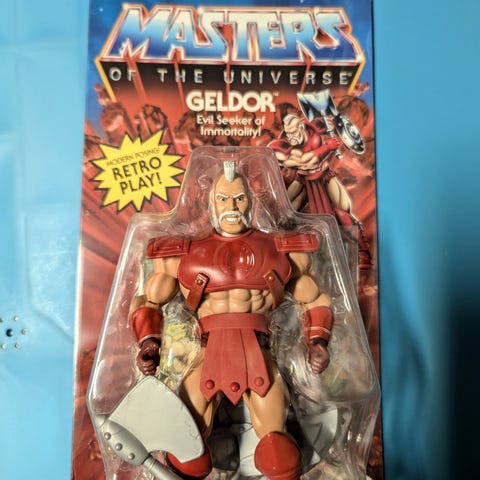 En vintage Galaxy Warriors Magnon moc , i grei stand