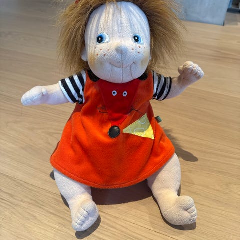 Hjemmesydde dukkeklær, sydd i mykt økologisk jerseystoff. Passer baby born og andre dukker på 43 cm