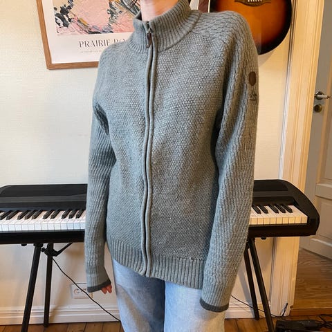 Pent brukt kåpe i ullmiks fra Only, størrelse XL. Gråmellert, god og varm.