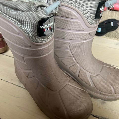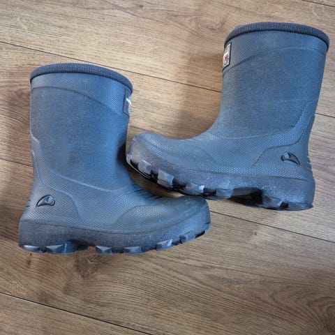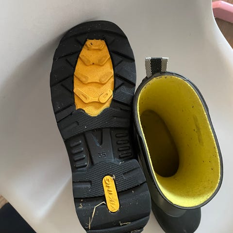 Godt brukte støvler. Gummistøvler med mykt varmt innlegg. I innestoffet er noen hull pga slitasjen. Ellers fungerer de helt ok. Størrelse 35, men passer som 35-37. Pyttpytt.