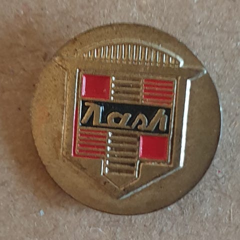 Cadillac emblem pins med nål, brukt som dekorativt tilbehør. Emblemet har farger og detaljer i metall, festet til en nål for enkel påsetting.