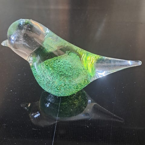 Muranostil Glassfugl i klart glass / cognacrød som skjærer over i en oransj farge.