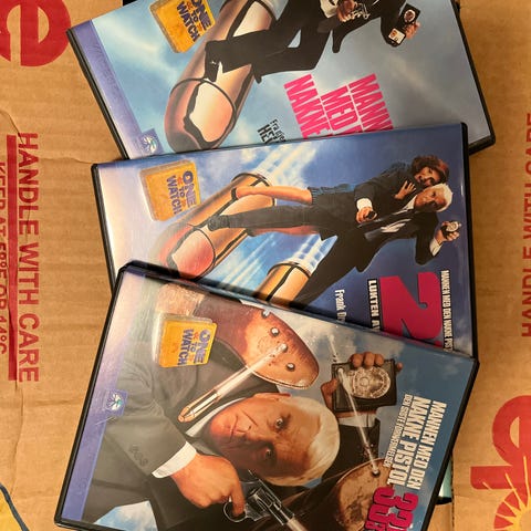 The Naked Gun Trilogy DVD sett inneholder tre filmer: The Naked Gun, The Naked Gun 2½ og Naked Gun 33⅓. DVD-ene er i standard størrelse og leveres i en plastkassett med original omslag.