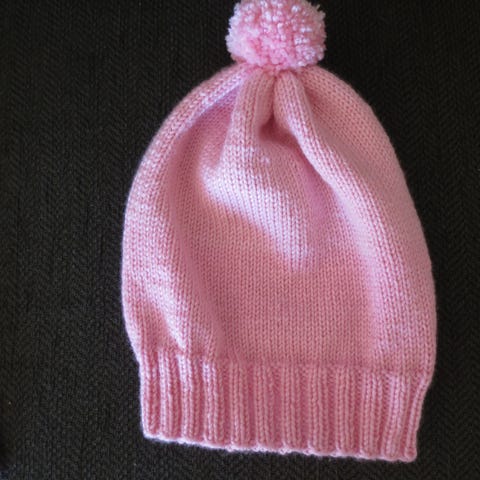 Hjemmestrikket bamselue, lite brukt, som ny.