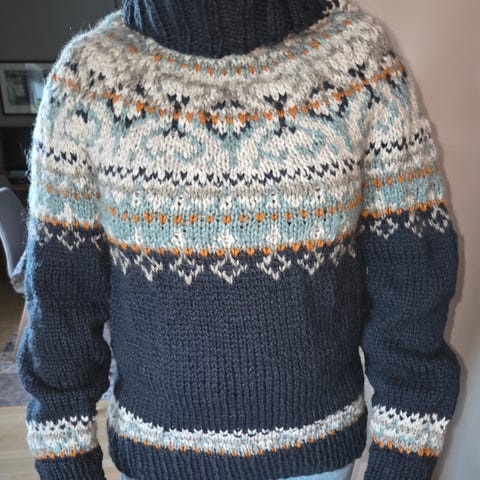 Ny ubrukt hjemmestrikket Alasuq genser til salgs. Strikket i Viking Alpaca Bris. Str XS. Kr 800. Kan sendes mot at kjøper betaler frakt.