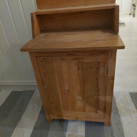 Jeg har brukt denne som en ren kommode på hytta. Den er jo også flott med et vaskestell hvor fat står nede og mugge og såpekopp står oppe (bare et eksempel på bruk, og ønsker du vaskestell så har jeg det også)