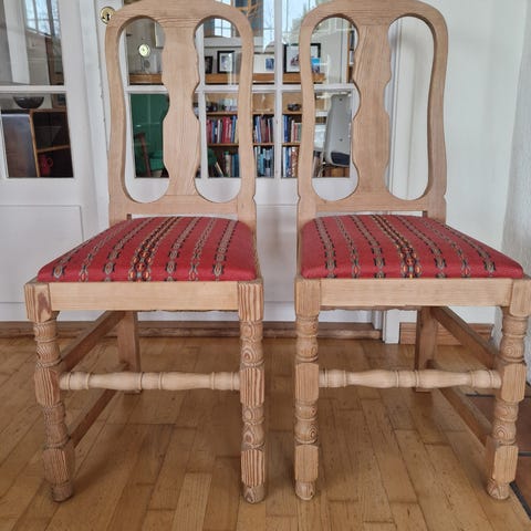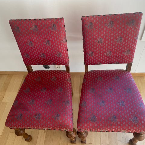To antikke spisestoler.