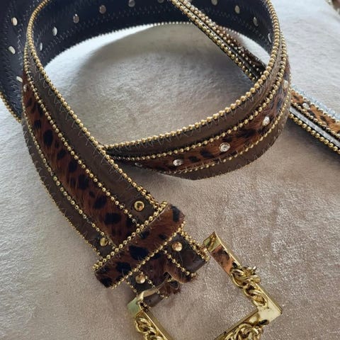 Vintage 90 cm (ca str L / XL) belte i ekte skinn fra bestemors samling. Hvitt med statement - spenne i sølv med hekte (ikke justerbar) i Y2k / boho stil. Trolig fra tidlig / midten av 2000-tallet. En liten turkis detalj.