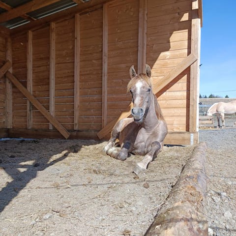 Samir håndteres daglig. I sommeren hoppet han over trestokk på beite flere ganger, fikk dessverre ikke tatt bilde. Var ikke redd av gymball når fikk hilse på det.