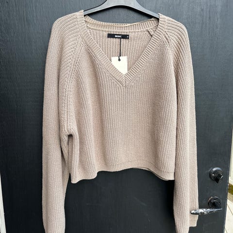 Bik Bok Genser i størrelse M for kvinner. Genseren er hvit og har en ribbestrikket tekstur med krage og knappestolpe.