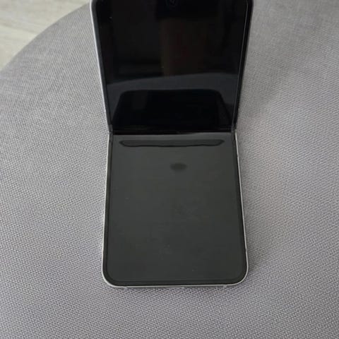 Samsung Galaxy Z Flip6 smartphone med sammenleggbar skjerm. Farge: lyse blå. Enheten har en kompakt design som kan foldes for enkel oppbevaring og transport. Inkluderer original eske. Passer for brukere som ønsker en moderne telefon med fleksibel skjermteknologi.